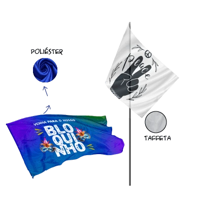 Para o desenvolvimento de bandeiras tradicionais, o tecido poliéster ou taffeta são os mais indicados, sobretudo pela forma com que se comportam em ambiente aberto, o que o torna mais atrativo aos potenciais clientes.