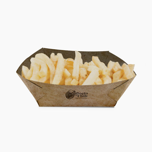 Conheça a Bandeja para Porção Personalizada, também chamada de Bandeja Multiuso! Esta embalagem é indicada para servir porções de fritas, tirinhas de frango, onions rings e etc.