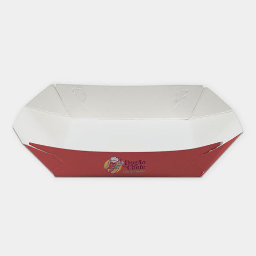 Conheça a Bandeja para Porção Personalizada, também chamada de Bandeja Multiuso! Esta embalagem é indicada para servir porções de fritas, tirinhas de frango, onions rings e etc.