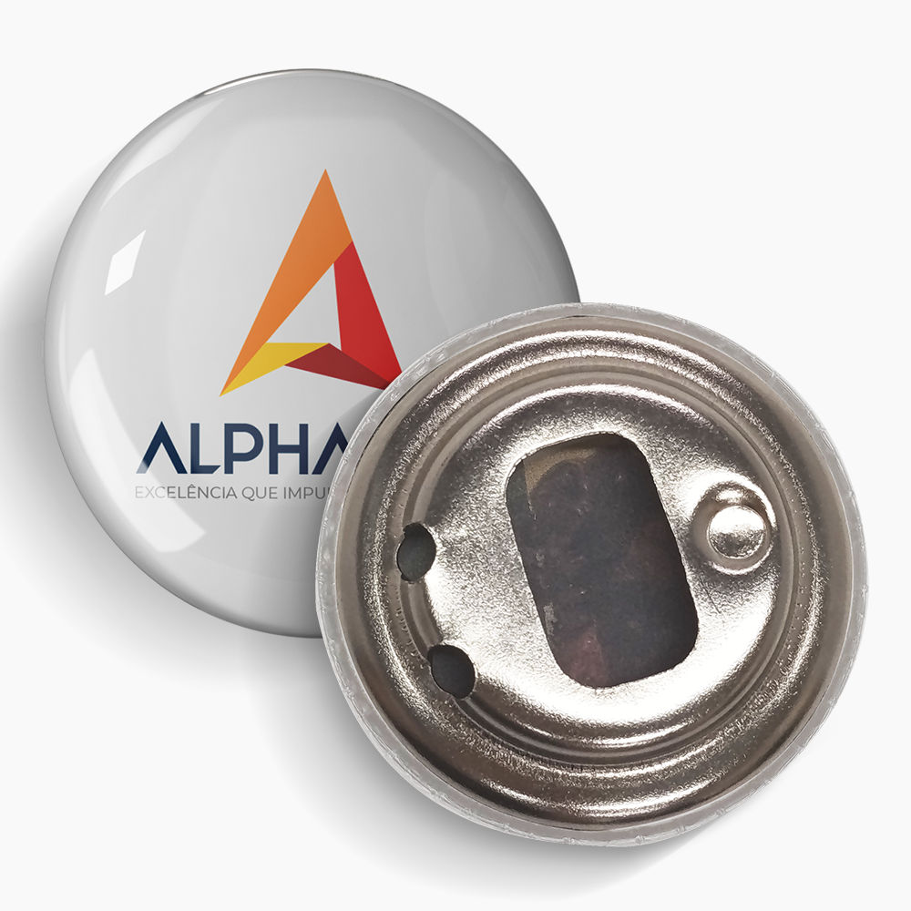 O Botton Abridor de Garrafa é feito em metal, com impressão em couché brilho 115g e acabamento de poliéster com abridor de garrafa, ou seja, seu material foi desenvolvido para ser resistente e de longa durabilidade.