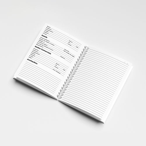 • Lâmina Institucional: Insira o logo da sua empresa ou arte exclusiva. Seu caderno será único.