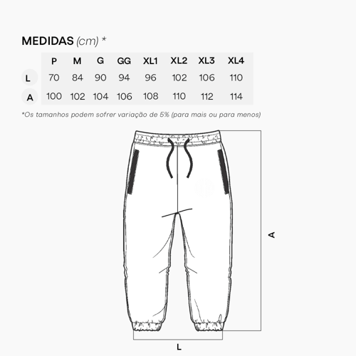 A personalização da calça é simples e prática! Basta inserir o design escolhido e feito baseado em suas necessidades — seja oferecer exclusividade ou promover o seu negócio — nos gabaritos disponíveis, respeitando as linhas de corte determinadas, e enviar para o início da produção.