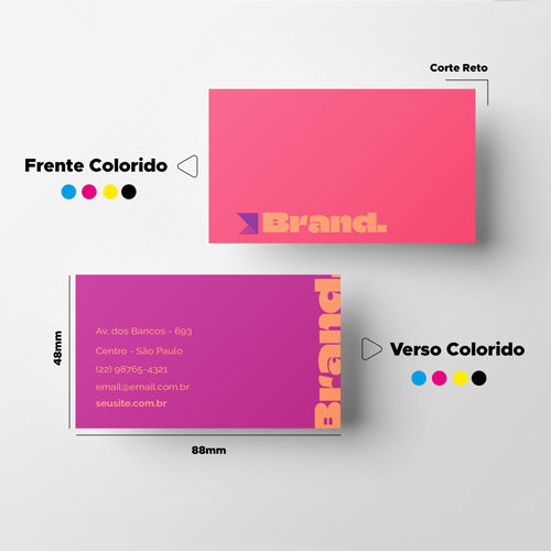 (35 avaliações) Cartão de Visita - 88x48mm - Colorido Frente e Verso - Refile