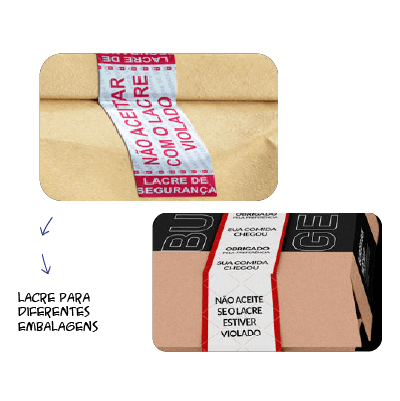 O lacre pode ser utilizado em caixas, sacolas, potes, marmitas e qualquer tipo de embalagem destinada ao transporte de alimentos ou produtos.