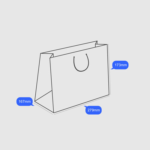 (0 avaliações) Sacola Horizontal P - 245x115mm - Impressão 1 cor - Alça Nylon Preta 35cm - Faca Padrão
